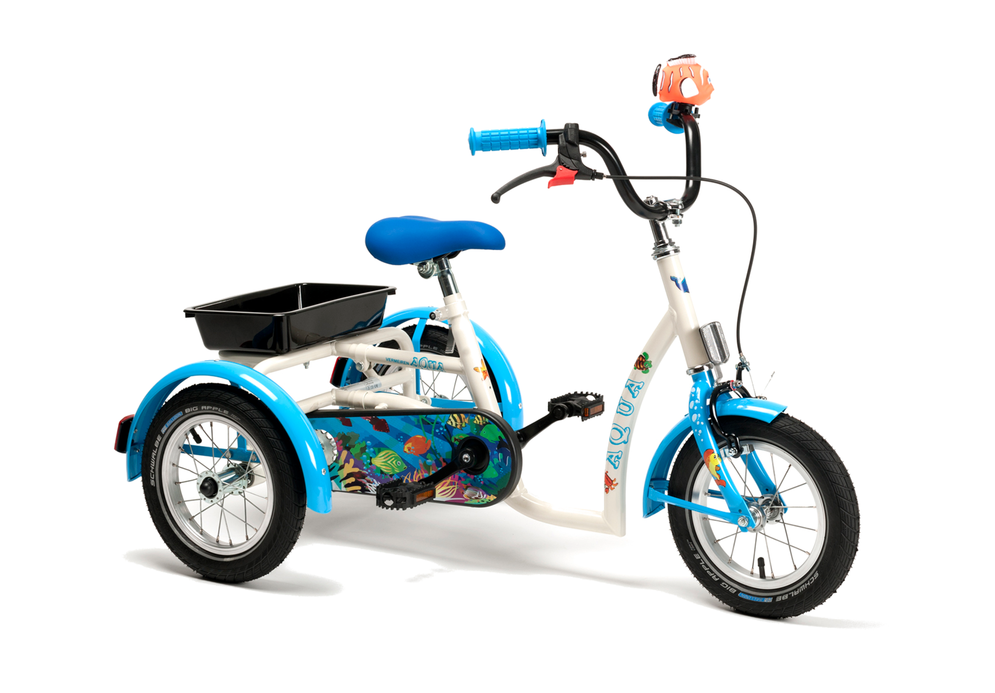 Rowerek rehabilitacyjny trójkołowy AQUA przeznaczony jest dla dzieci w wieku 3 - 7 lat. Dzięki swej wyjątkowej kolorystyce oraz ozdobom sprawia, że jest uwielbiany zarówno przez chłopców jak i dziewczynki.