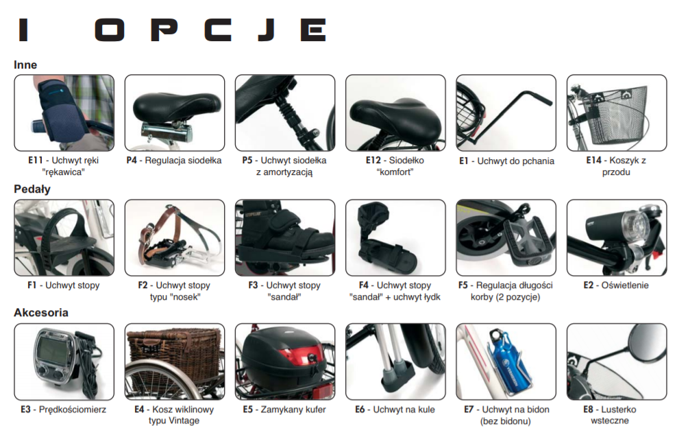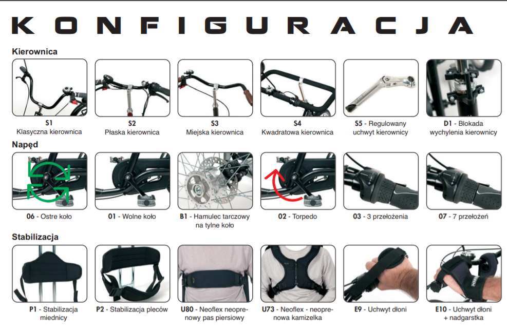 Rowerek posiada bogatą gamę opcji dodatkowych co pozwala na bezpieczną jazdę oraz ustabilizowanie w taki sposób aby dziecko nie spadło z rowerka. (pliki do pobrania- formularz zamówienia)