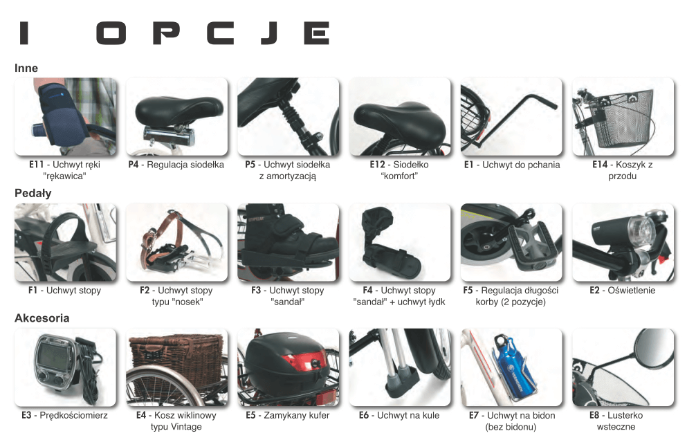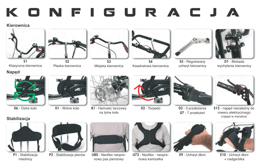 Rowerek posiada bogatą gamę opcji dodatkowych co pozwala na bezpieczną jazdę oraz ustabilizowanie w taki sposób aby dziecko nie spadło z rowerka. (pliki do pobrania- formularz zamówienia)