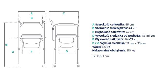- Krzesło bez pojemnika można używać jako ramę asekuracyjną / nadstawkę na sedes