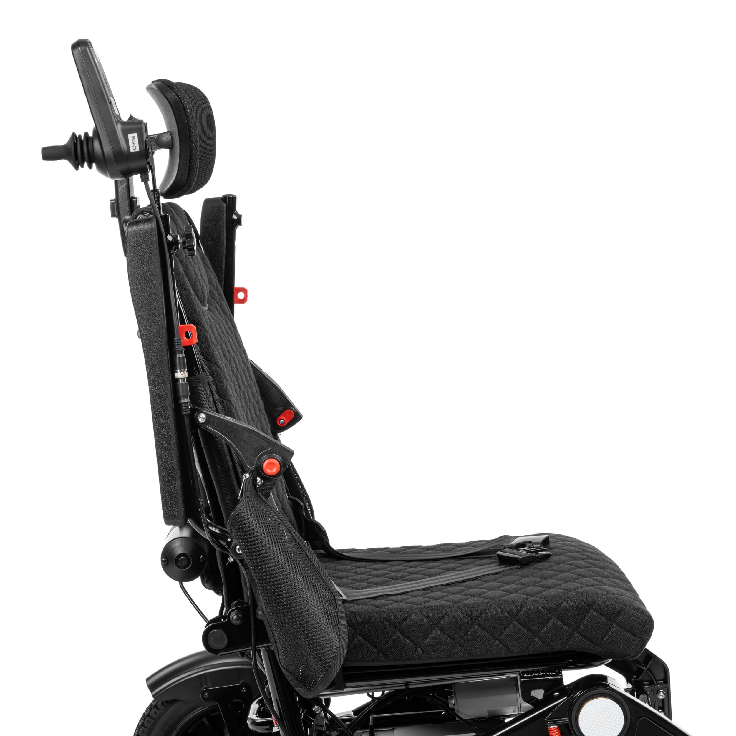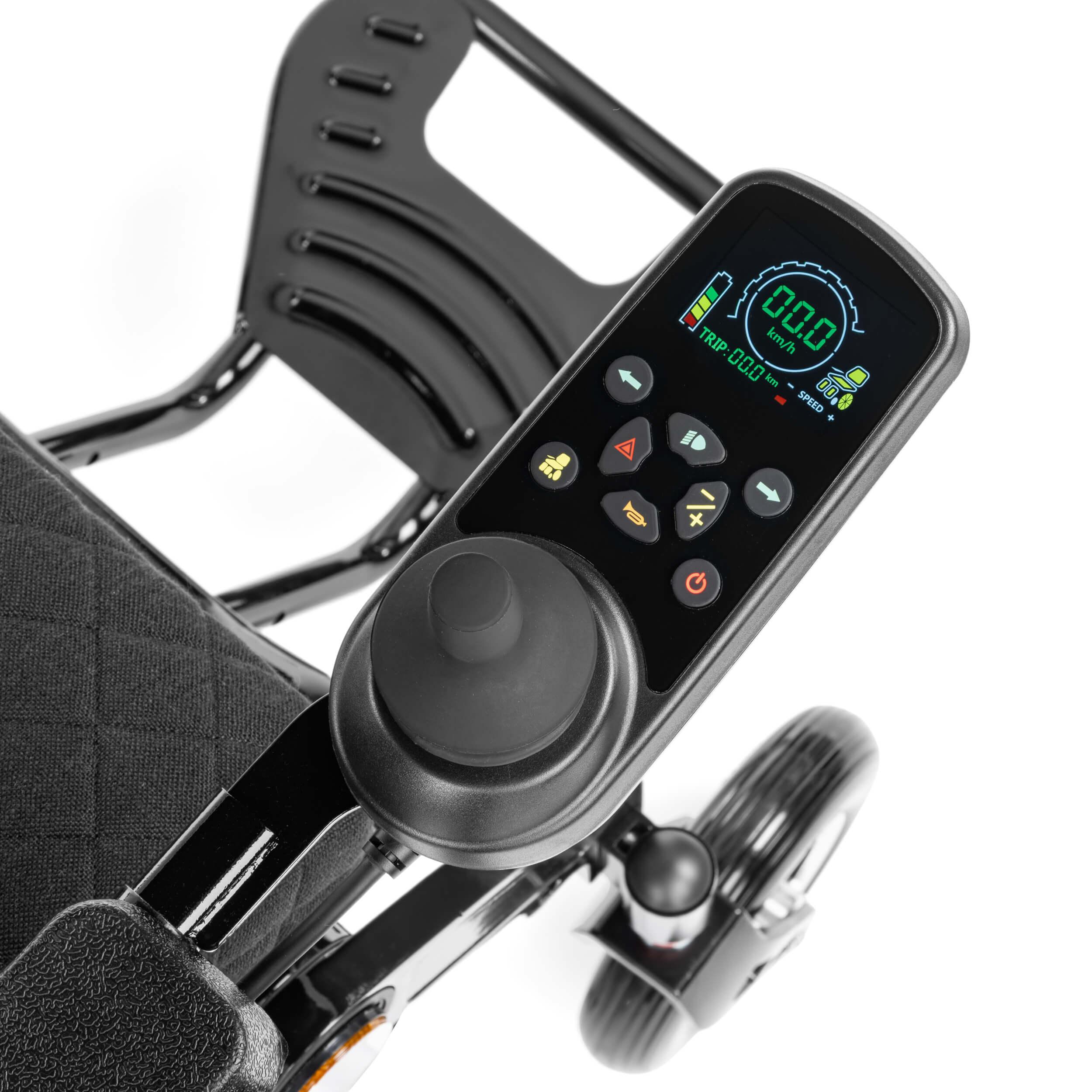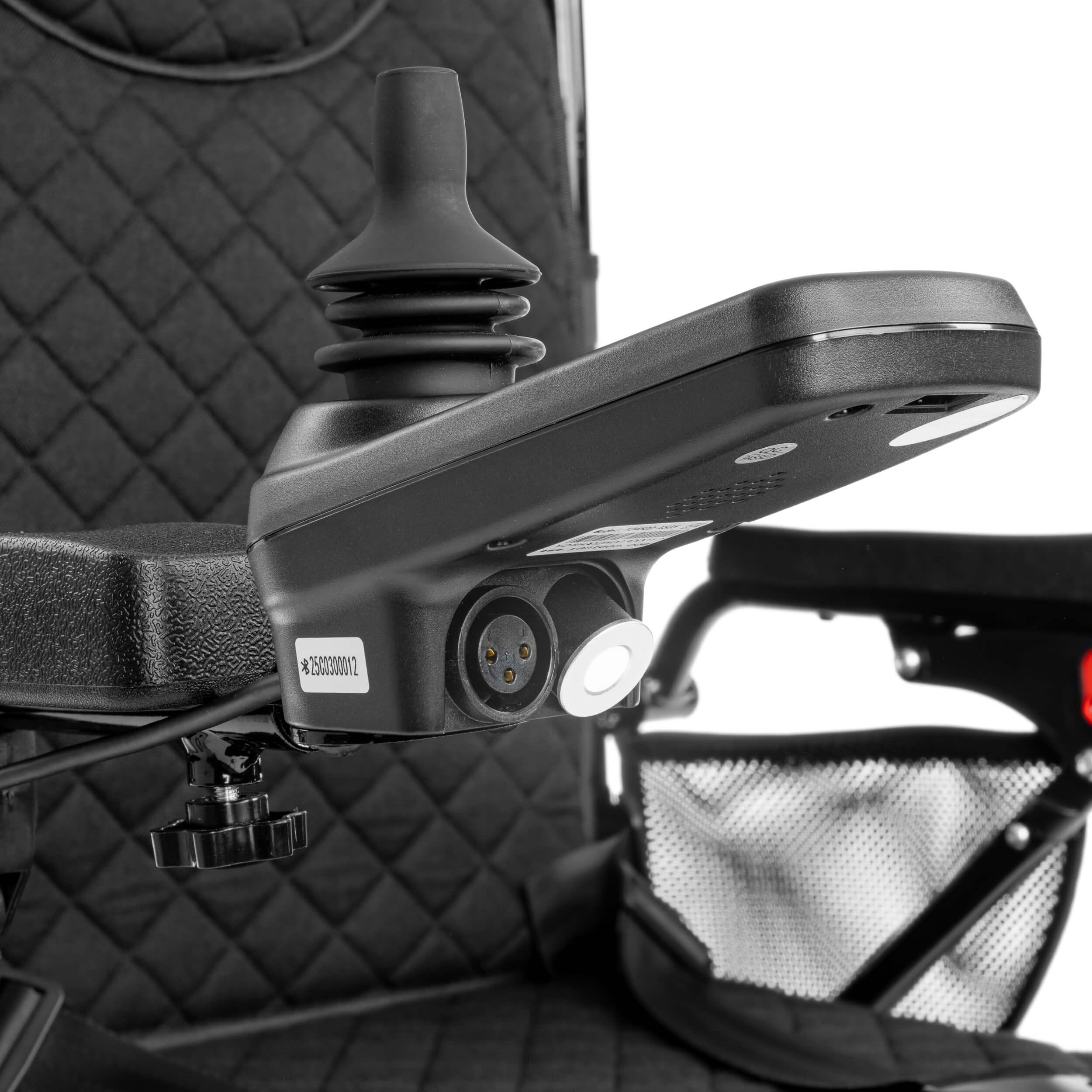 Wygodny joystick przy podłokietniku oraz opcjonalny zdalny pilot umożliwiają łatwe prowadzenie wózka także przez opiekuna. Wszystko pod kontrolą – nawet przy ograniczonej sprawności dłoni.