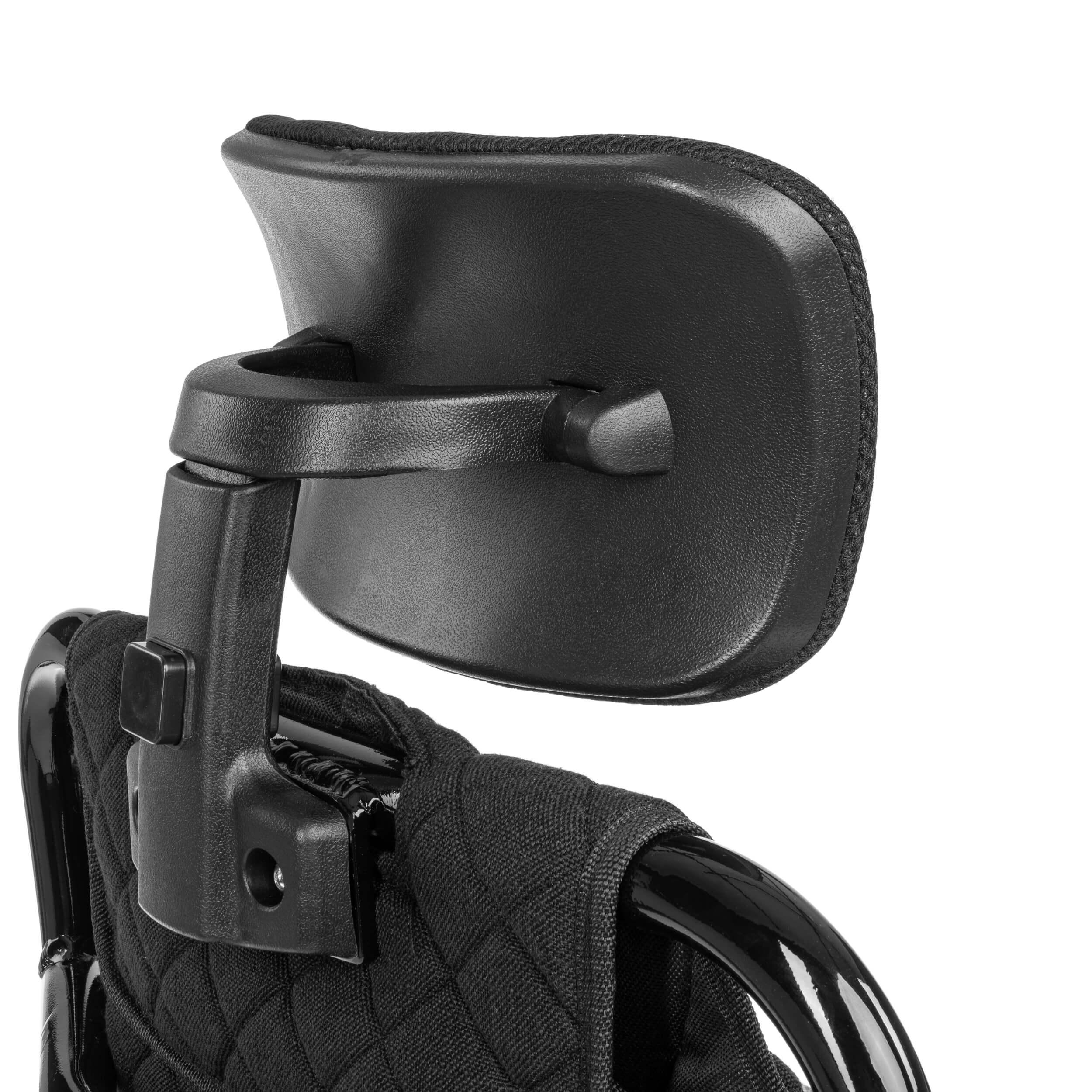 Wyposażony w zagłówek, amortyzację trójpunktową, podnoszone podłokietniki i podnóżek — dla płynnej jazdy na każdej nawierzchni. Kieszenie i miejsce z tyłu oparcia pomieszczą dokumenty i drobiazgi.