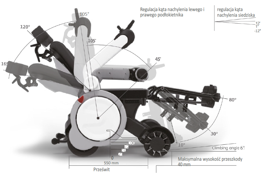 Dzięki zastosowaniu zaawansowanej technologii, ten wózek zapewnia użytkownikom niezależność i mobilność, ułatwiając przemieszczanie się zarówno w pomieszczeniach, jak i na zewnątrz.