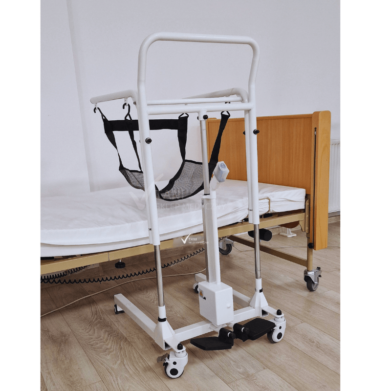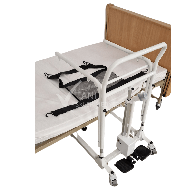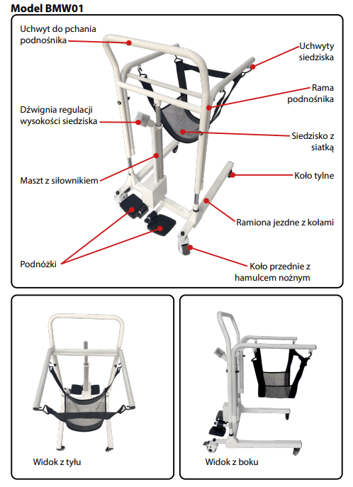 Elektryczny podnośnik toaletowy pacjenta BMW01 znanej i cenionej marki Vitea Care jest sprzętem pomocniczym znajdującym zastosowanie zarówno w warunkach domowych jak i placówkach medycznych. Mobilny podnośnik znacznie uławia przesadzanie pacjenta i transport np: z łóżka na toaletę, czy z łóżka na fotel, kanapę. Niewątpliwą zaletą podnośnika jest łatwość obsługi, niewielki gabaryt oraz waga. Sprzęt jest bardzo pomocny dla opiekunów osób starszych, oraz personelu medycznego zapewnia im odpowiednią ergonomię pracy. Podnośnik toaletowy pacjenta BMW01 jest wielofunkcyjny łączy w sobie cechy podnośnika oraz wózka.
