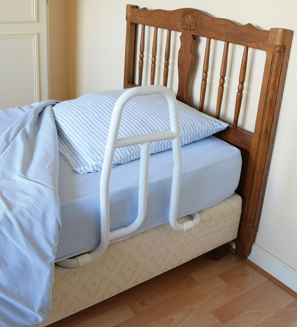 Barierka do łóżka chroni osobę leżącą przed spadnięciem z łóżka jak również stanowi pomoc przy samodzielnej zmianie pozycji z leżacej na siedzącą. Montaż jest bardzo łatwy i szybki, wystarczy wsunąć uchwyt między łóżko a materac. Dla jeszcze większej stabilizacji można uchwyt przymocować do łóżka.