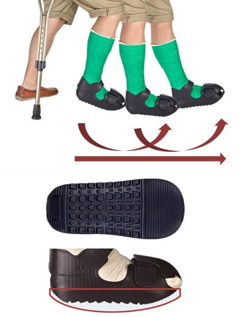 - Posiada regulację za pomocą 2 rzepów , by móc dopasować tęgość buta i zapięcie do indywidualnych potrzeb użytkownika, dzięki czemu możliwe jest stosowanie z różnymi rozmiarami szyn i gipsów