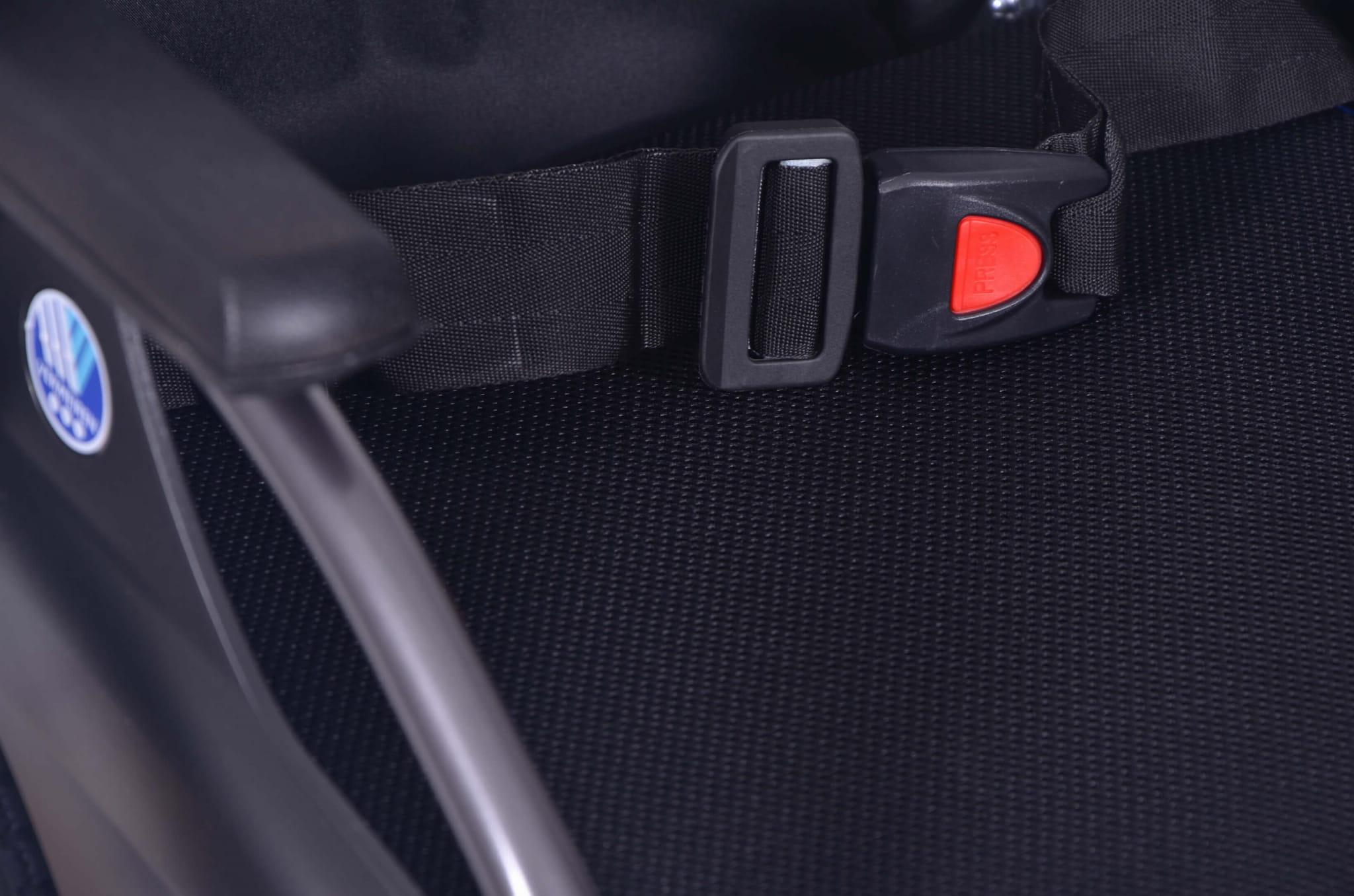 - Łamane oparcie wózka w połowie – dzięki czemu wózek zajmuje mniej miejsca w transporcie