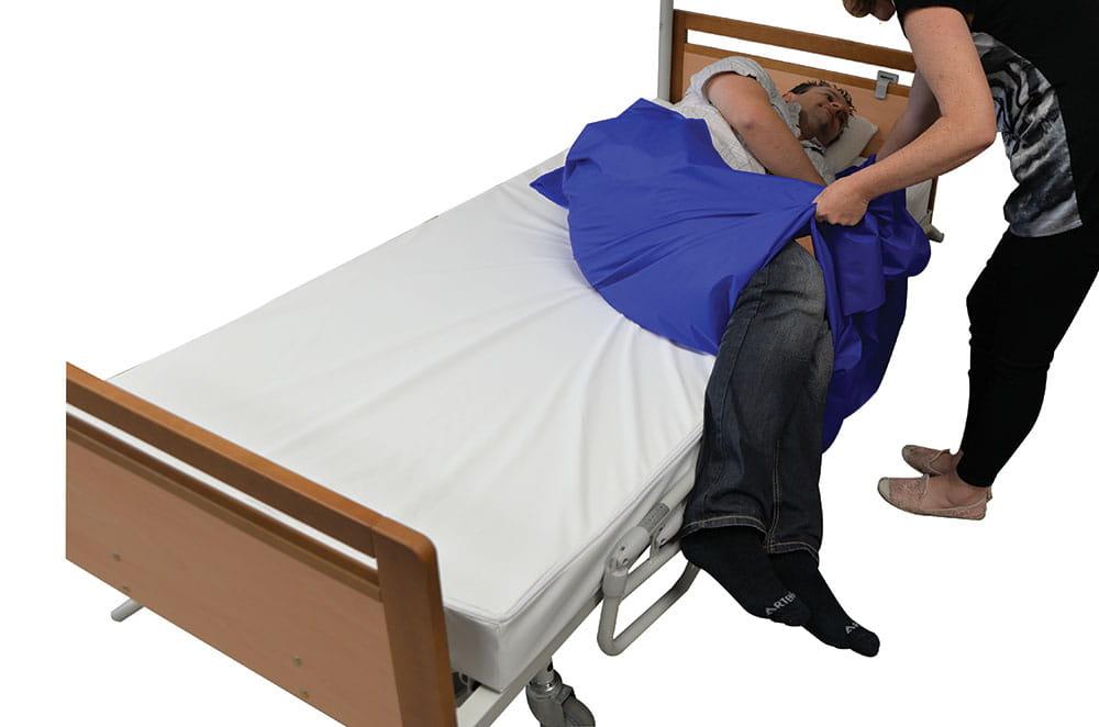 Mata do przesuwania chorego 150x120 to nieoceniona pomoc podczas codziennej pielęgnacji osób staleleżących z ograniczoną sprawnością ruchową. Podkład wykonany z cienkiego a jednocześnie wytrzymałego nylonu powleczonego silikonem, co sprawia, że materiał jest bardzo śliski, ułatwiając opiekę nad chorym, jego przemieszczanie, obracanie, przesuwanie.