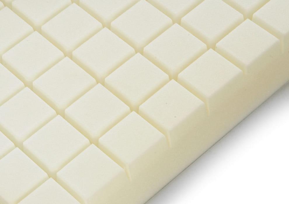 - Pianka wycięta w materac przeciwodleżynowy gofer, umożliwia lepszą redystrybucję ciśnienia, oraz cyrkulację powietrza,