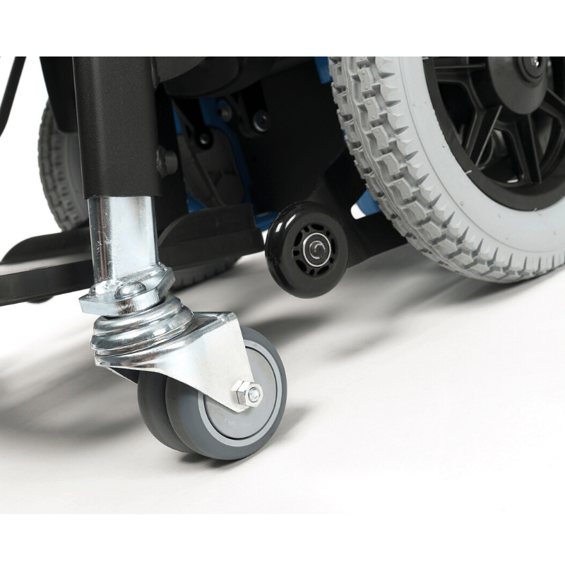 Wózek przez swój kompaktowy wygląd, duże koła napędowe przednie gwarantuje minimalny promień skrętu. Doskonale nadaje się do poruszania się w małych pomieszczeniach. Przy rozłożeniu do pozycji leżącej podłokietniki obniżają się poniżej linii siedziska co ułatwia transfer na łóżko i z łóżka na wózek.