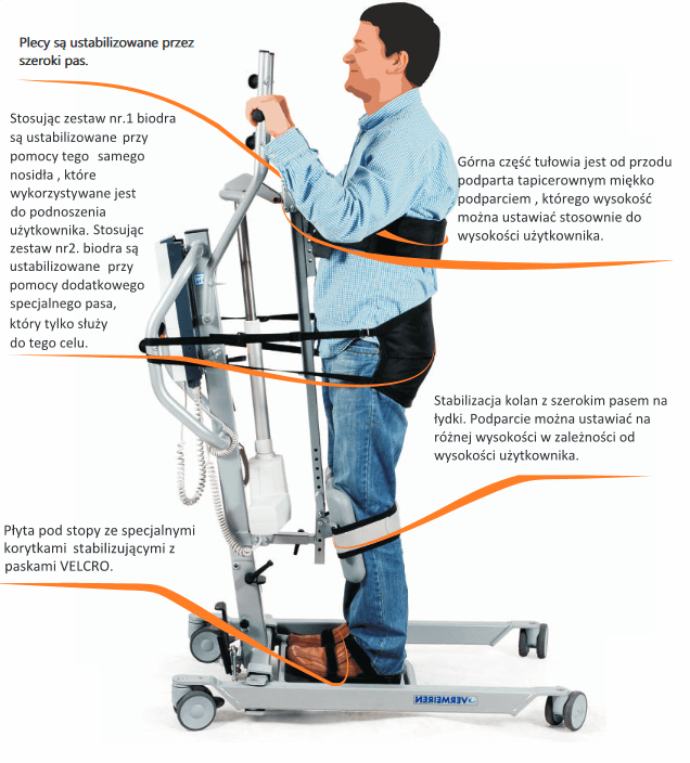 Albatros renomowanej firmy Vermeiren to urządzenie do pionizacji. Umożliwia pionizację pacjenta z pozycji siedzącej do wyprostowanej. Urządzenie wykorzystywane jest również do transferu osób z wózka lub łóżka do toalety w pozycji wyprostowanej.
