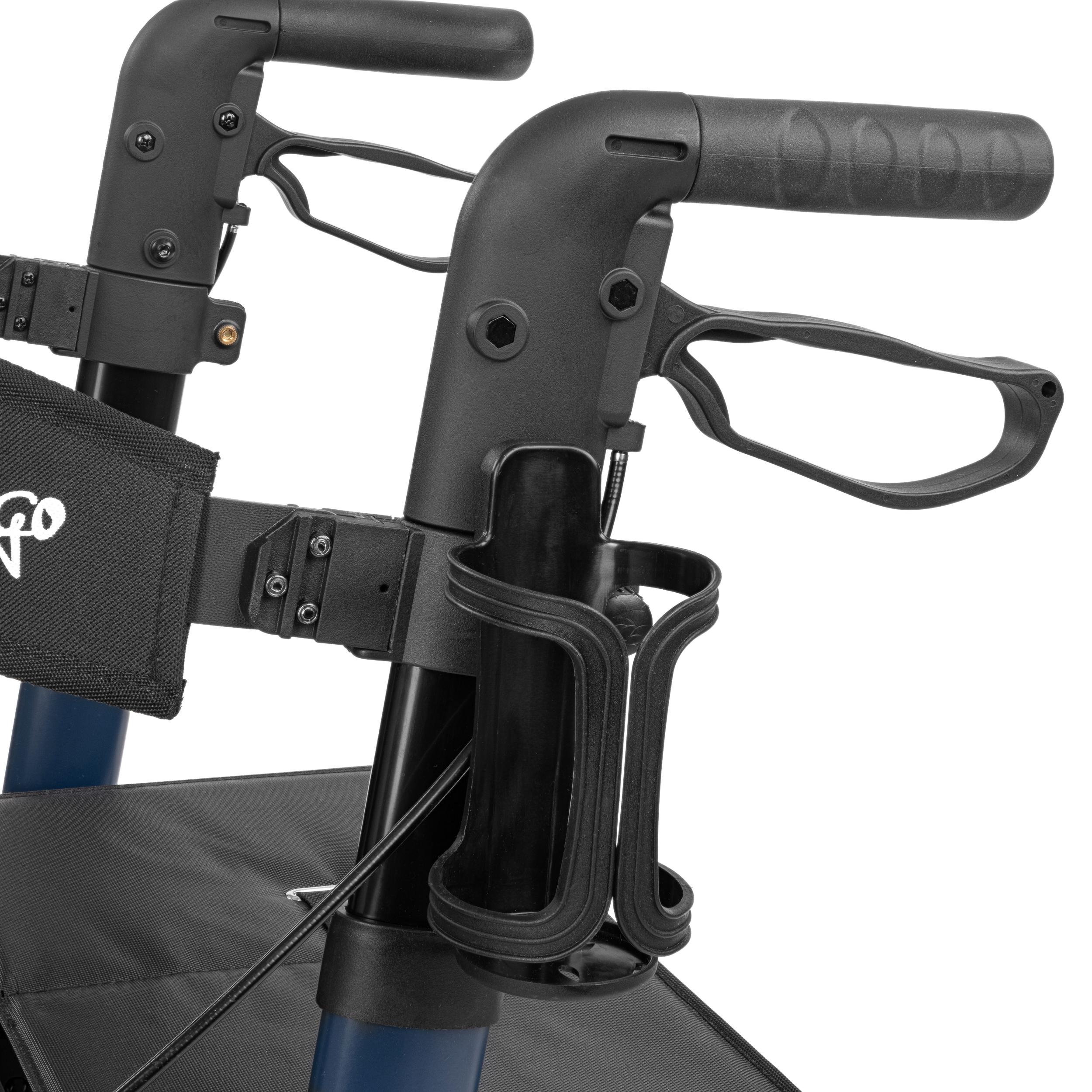 Stylowe, matowe wykończenie w głębokim odcieniu granatu wyróżnia YOLĘ AIR spośród innych podpórek. W zestawie znajdziesz praktyczny uchwyt na laskę i kubek lub bidon, a także pompkę do kół – wszystko, czego potrzebujesz, by cieszyć się komfortem każdego dnia.