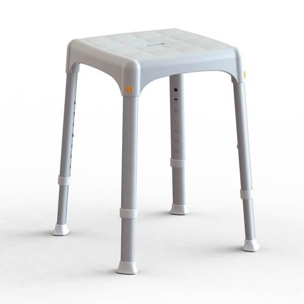 Wytrzymały do 120 kg aluminiowy taboret kwadratowy pod prysznic. Taborecik polecany jest osobom o obniżonej sprawności ruchowej, która uniemożliwia bądź utrudnia samodzielne wykonywanie czynności higienicznych. Stołek może być wykorzystywany zarówno w kąpieli jak i pod prysznicem, łazience i innych wilgotnych pomieszczeniach, w warunkach domowych jak i szpitalnych.