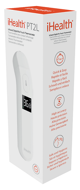 Termometr iHealth PT2 jest w pełni bezdotykowy - oznacza to że nie jest wymagany kontakt z czołem aby otrzymać rzetelny wynik pomiaru.