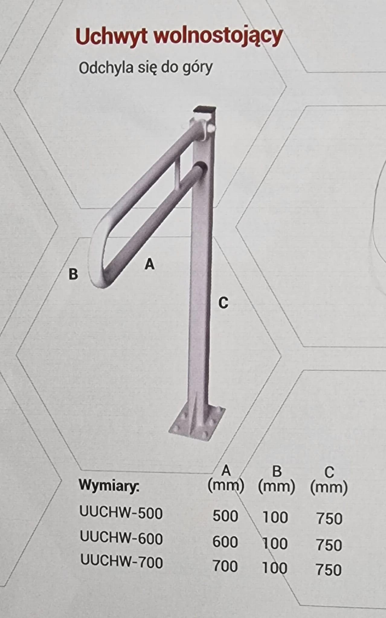 Uchwyt łazienkowy uchylny wolnostojący dla niepełnosprawnych