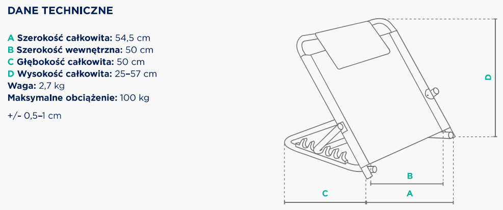 | Wymiary | szer. 55 x gł. 50 x wys. 25-57 cm |
